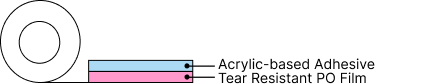 These tapes consist out of a specially designed high-performance PO film that has an outstanding tear resistance. They are coated with a pressure-sensitive, acrylic-based easy-to-peel adhesive available in medium (E5), high (E7), and very high (E9) adhesion levels to support various processing operations and surface roughness.