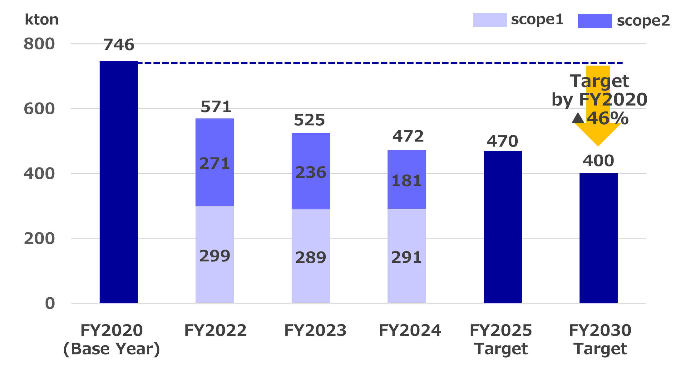 | CO2 emissions(Scope 1+2) | 746kton | 571kton | 525kton | 472kton | 470kton | 400kton |