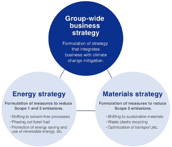 Nitto Group ha identificato la “realizzazione di una società decarbonizzata” come uno dei suoi principali temi di sostenibilità. Riconosciamo che la riduzione delle emissioni di gas a effetto serra (GHG), la causa principale dei cambiamenti climatici, è essenziale per costruire una società sostenibile e raggiungere la crescita aziendale. Consideriamo che sia una responsabilità sociale importante.