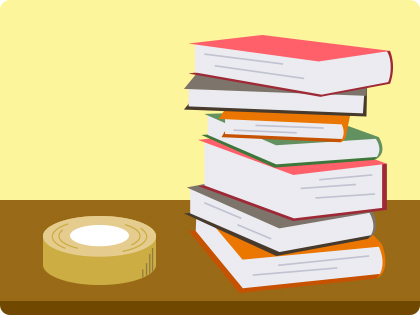 この際、テープの上に載せた雑誌や辞書等は不安定になりますので落下等の安全には十分に気をつけて下さい。