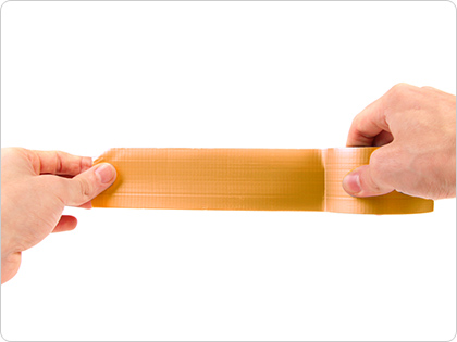 布テープは、布に厚く粘着剤を塗布した構造になっています。そのためクラフトテープよりも頑丈であり、縦横の糸のおかげで手でもまっすぐちぎることができます。しっかりと貼れて、重ね貼りができたりすることも、布テープならではのメリットです。