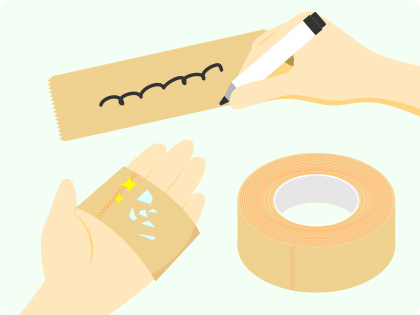 活躍の方法は実にさまざま。まず、災害直後には、飛散したガラス片の片付け、亀裂や壊れたものの応急処置が簡単に行えます。次に、居場所や状況などをテープに書くことで、どこの壁であっても即席の伝言板に早変わり。家族や周囲に存在や状況を知らせるのに役立ちます。避難所生活が始まるとダンボールで個人のスペースを確保するのですが、そのつなぎ合わせに使えたり、食料を保存する袋の口止めに便利。他にも、状況次第でいくらでも活用方法が考えられます。