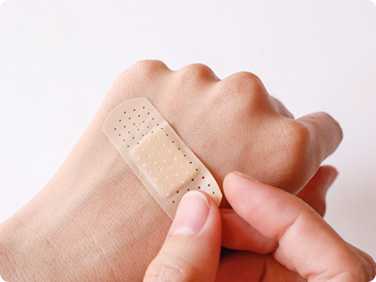 また、今回は体に貼ったテープのはがし方もご紹介します。体に貼るテープといえば、絆創膏が一般的です。基本は上記と同じくゆっくり、30度の角度ではがすことを意識します。そのうえで周囲の皮膚を手で押さえながらはがすと、痛みが軽減できます。