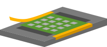 耐熱性と粘着力コントロール技術を組み合わせ、電子部品・デバイスの各工程で使えるようにしたテープ。特に耐熱性にすぐれているため、加熱工程での一時的な固定やマスキング、フイルム部品などの保護・搬送に使用されています。