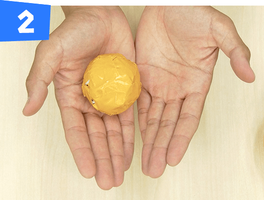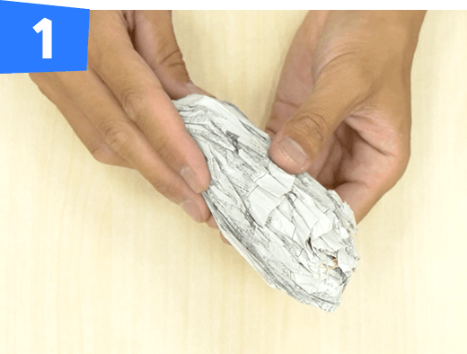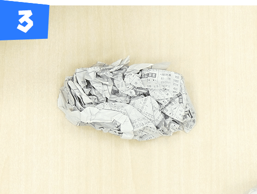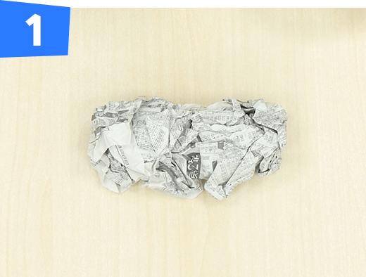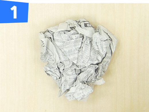 新聞紙1枚をくしゃくしゃに丸めて球体を作ります。