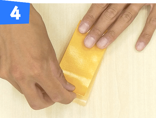 長さ20cmに切った黄色のテープを半分に折って貼り合わせます。