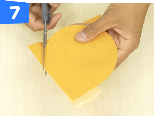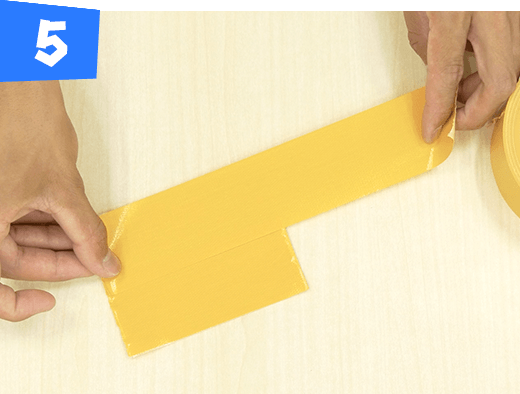 長さ20cmに切った黄色のテープを手順4で作ったものに端だけ重ねて、半分に折り貼り合わせます。