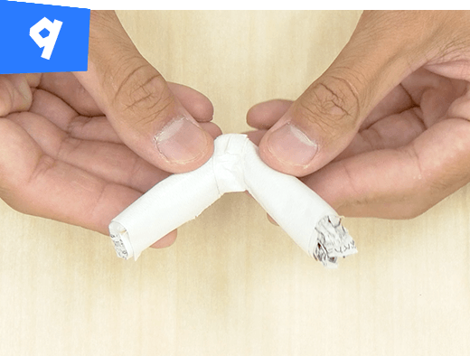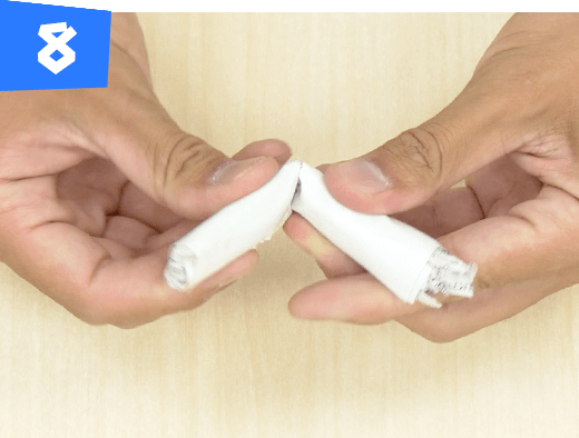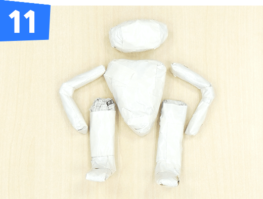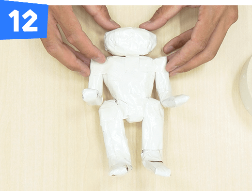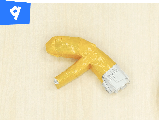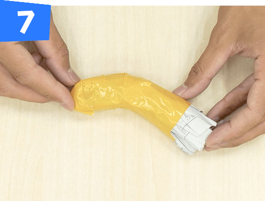 折り曲げた部分をテープで固定し、腕を作ります。同じものをもう1つ作ります。
