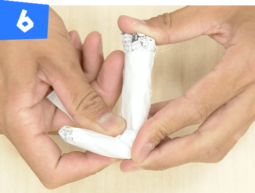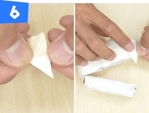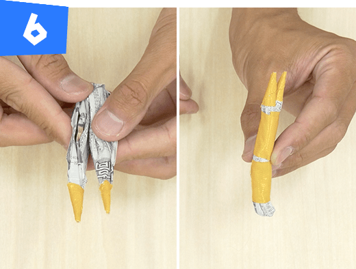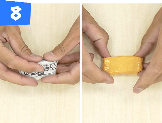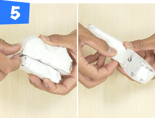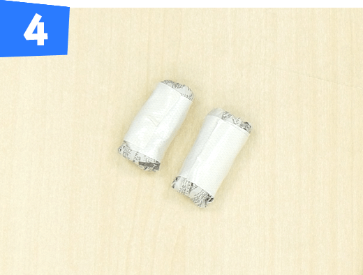 手順5で作ったものを半分に折ってテープで巻きます。同じものを2つ作ります。