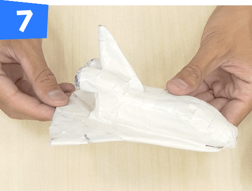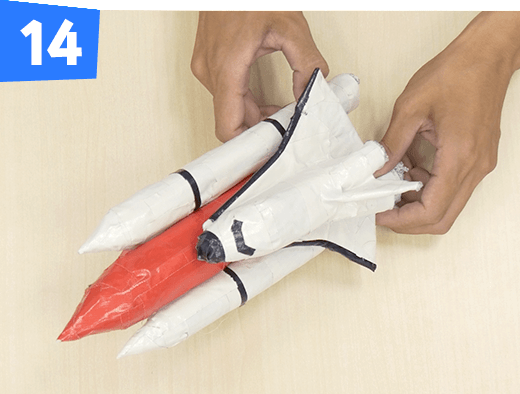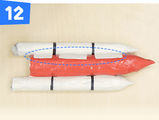 燃料タンクとロケットブースターを白のテープでくっつけます。