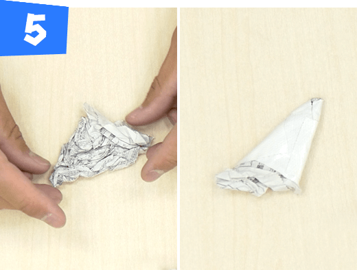 新聞紙半分をくしゃくしゃに丸めて逆三角形型のボディを作ります。