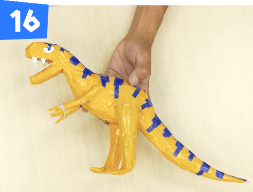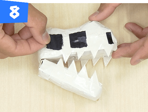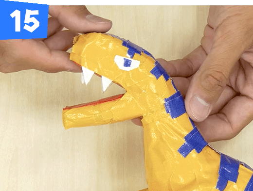 白目のふちを小さく切った黄色のテープで上から貼って、恐竜らしい目の形にします。