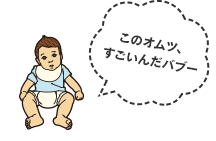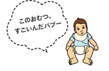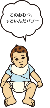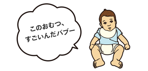 赤ちゃんのいる家庭の必需品、紙おむつ。使い終わったおむつを丸めて処理する時に、折りたたんでいたテープを2~3倍の長さに伸ばして強力に固定。はく離ライナーが不要なのでゴミも出ません。
