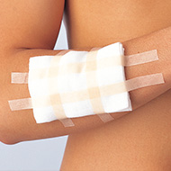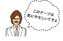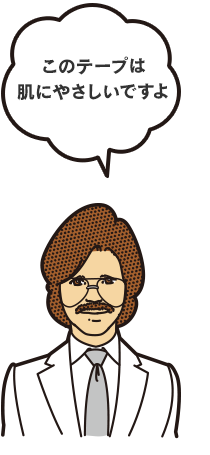 病気やけがをした時に、ガーゼ、点滴を皮膚に固定したりするサージカルテープ。何度も同じ部位に貼る患者さんの肌へのダメージを少なくするために、粘着剤をゲル状にしたテープが使われています。