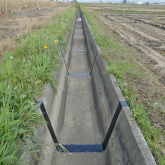 老朽化した農業用コンクリート水路をテープで簡易に補修できて漏水を防げるテープ。従来の工法に比べて低コストで労力が掛からないところもポイントです。