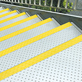 階段やスロープなど滑りやすい箇所や、危険を伴う作業場でのスリップを防ぐために、表面がザラザラした粘着テープが使われています。すぐれた耐久性により滑り止め効果が長く持続。みなさんの安全を守ってくれるテープです。