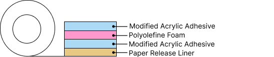 Nitto Double Coated Tape 5791 is a pressure sensitive adhesive foam tape consisting of a pressure sensitive modified acrylic adhesive, intended for use of mounting different substrates, especially on low surface energy substrates.