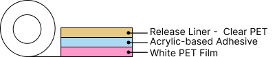 The tape consists of a special PET carrier coated with a pressure sensitive pure acrylic adhesive, laminated with a white PET release liner.